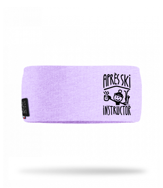 Cotton sports headband for woman with design 1367 APRÉS SKI INSTRUCTOR in color LAVENDER