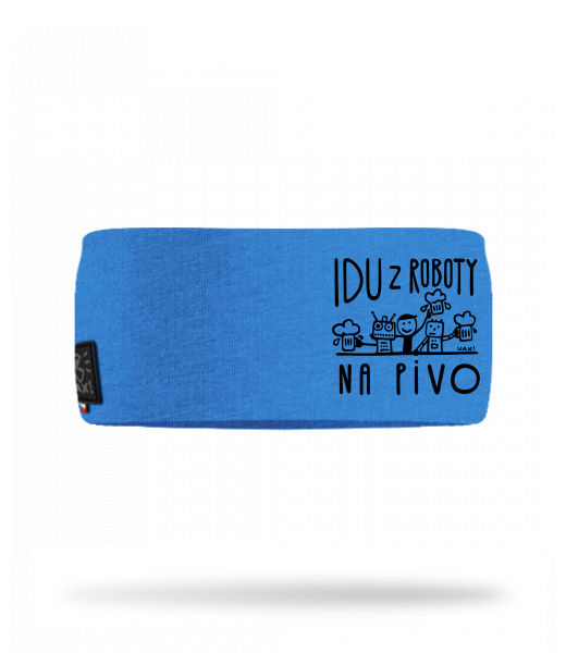 Cotton sports headband for woman with design 1369 IDU Z ROBOTY NA PIVO in color CAPRI BLUE