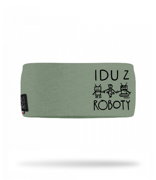 Cotton sports headband for woman with design 1377 IDU Z ROBOTY 2 in color OLIVA