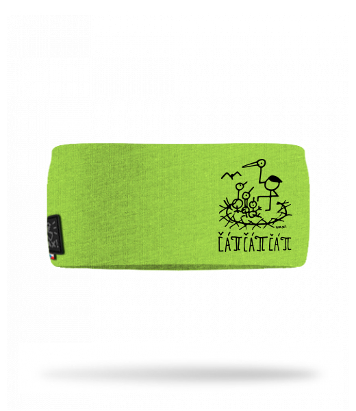 Cotton sports headband for woman with design 1379 ČÁPÍČÁPÍČÁPÍ in color PARROT GREEN