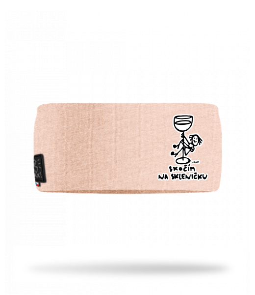 Cotton sports headband for woman with design 1384 SKOČÍM NA SKLENIČKU in color CAPPUCINO