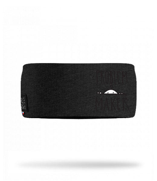 Cotton sports headband for woman with design 1385 PROBLEM MAKER in color BLACK