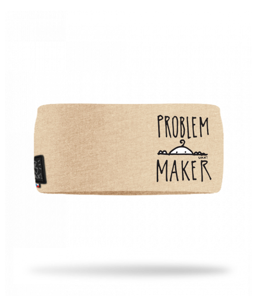 Cotton sports headband for woman with design 1385 PROBLEM MAKER in color CARAMEL