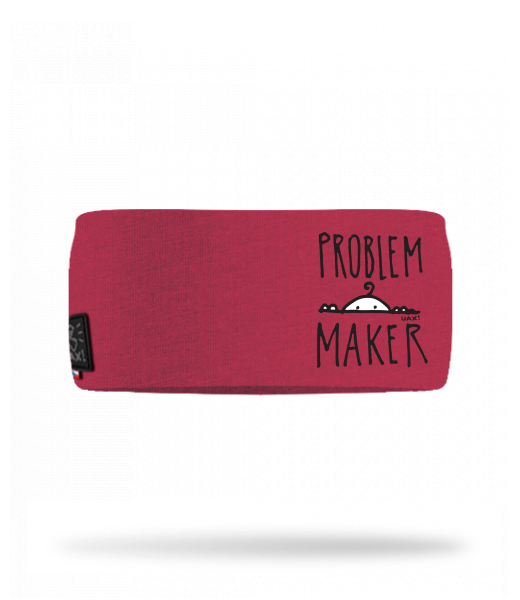 Cotton sports headband for woman with design 1385 PROBLEM MAKER in color CHILLY PEPPER RED