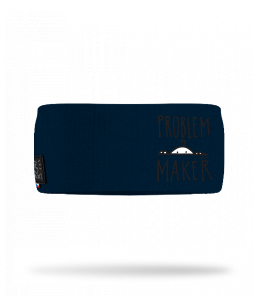 Cotton sports headband for woman with design 1385 PROBLEM MAKER in color DARK NAVY