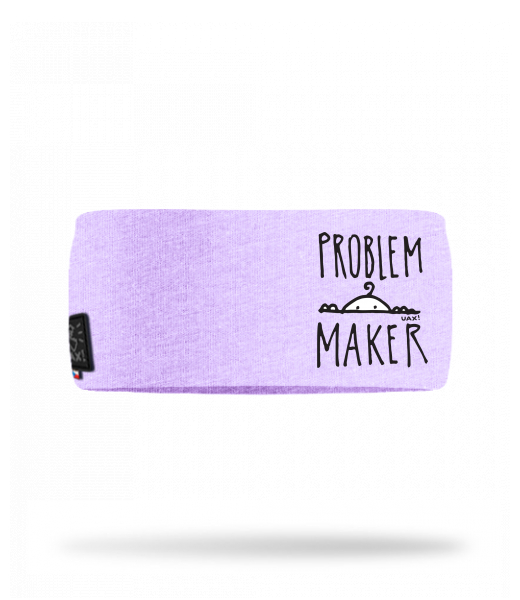 Cotton sports headband for woman with design 1385 PROBLEM MAKER in color LAVENDER