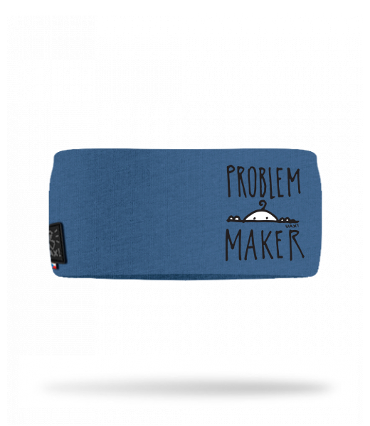 Cotton sports headband for woman with design 1385 PROBLEM MAKER in color MOONLIGHT BLUE