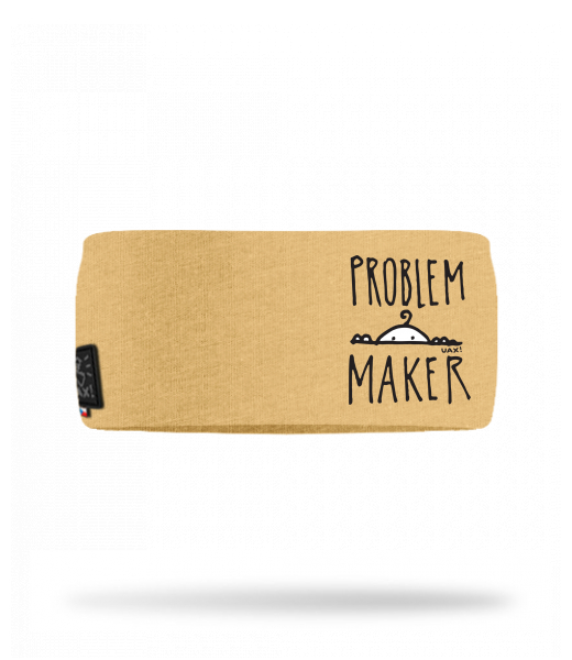 Cotton sports headband for woman with design 1385 PROBLEM MAKER in color MUSTARD