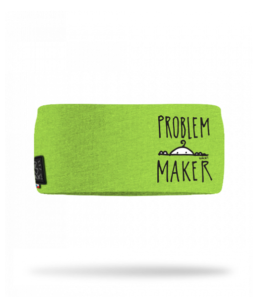 Cotton sports headband for woman with design 1385 PROBLEM MAKER in color PARROT GREEN