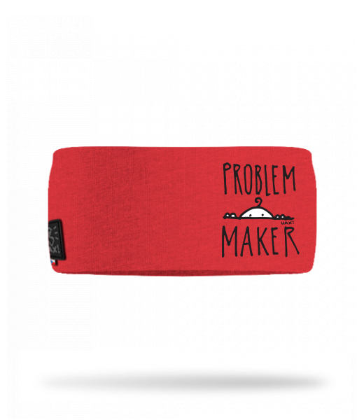Cotton sports headband for woman with design 1385 PROBLEM MAKER in color RED