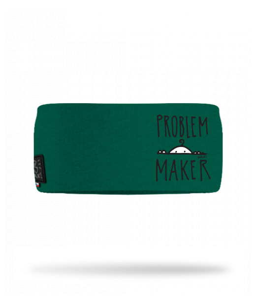 Cotton sports headband for woman with design 1385 PROBLEM MAKER in color UNIVERSITY GREEN