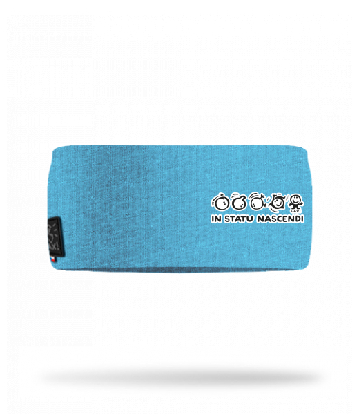Cotton sports headband for woman with design 38 IN STATU NASCENDI in color BLUE ATOLL
