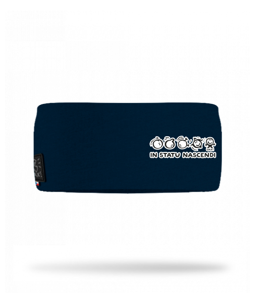 Cotton sports headband for woman with design 38 IN STATU NASCENDI in color DARK NAVY