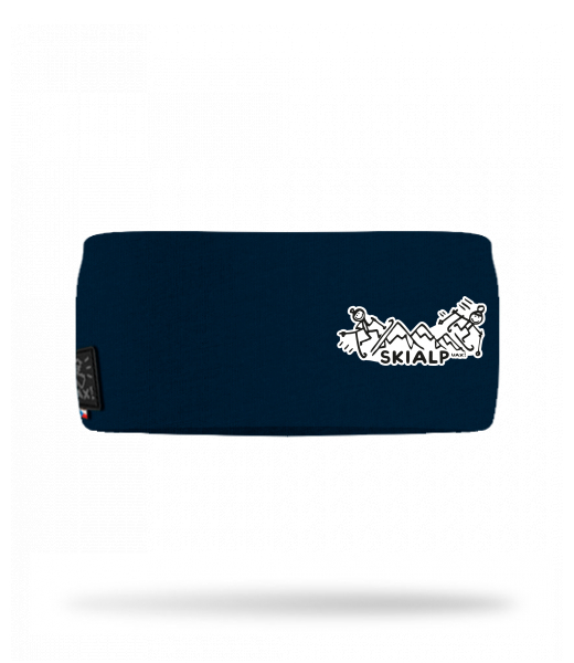 Cotton sports headband for woman with design 401 SKIALP in color DARK NAVY