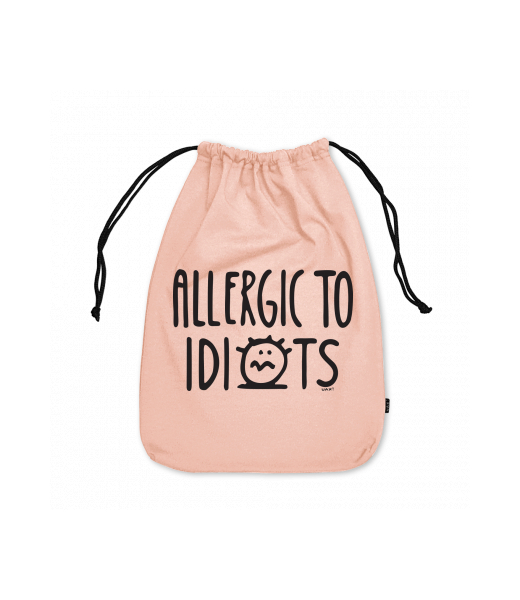 Small cotton pouch for woman with design 1354 ALLERGIC TO IDIOTS in color PEACH
