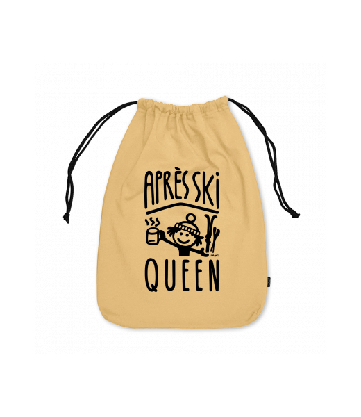 Small cotton pouch for woman with design 1371 APRÉS SKI QUEEN in color MUSTARD