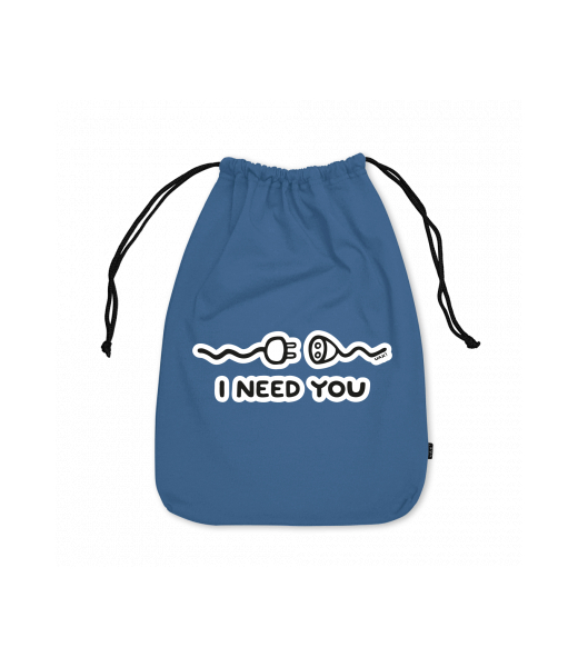 Small cotton pouch for woman with design 581 I NEED YOU in color MOONLIGHT BLUE