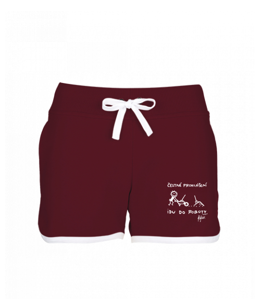 Women's shorts with an original print for woman with design 1303 ČESTNÉ PROHLÁŠENÍ IDU DO ROBOTY in color DARK RED