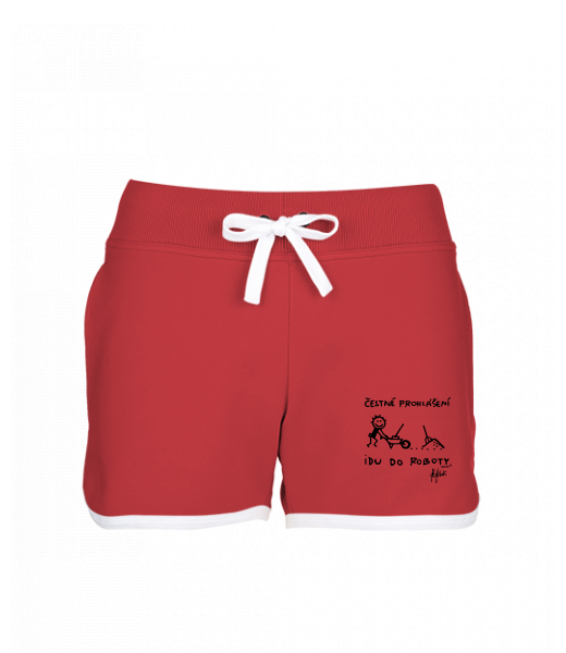 Women's shorts with an original print for woman with design 1303 ČESTNÉ PROHLÁŠENÍ IDU DO ROBOTY in color RED