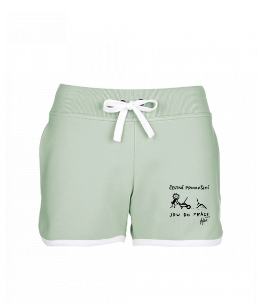 Women's shorts with an original print for woman with design 1304 ČESTNÉ PROHLÁŠENÍ JDU DO PRÁCE in color PISTACHIO