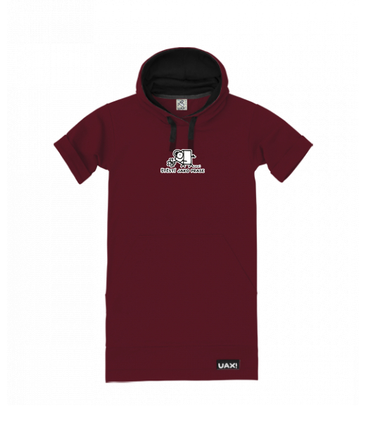 LADIES SWEATSHIRT DRESS SHORT made of thin breathable tracksuit made of elastic material. Sweatshirt dress with short folded sleeves, over the head with a hood. The hood is stitched with an inner black knit insert. The dress has black laces and spacious pockets on the front. We also sew in oversized sizes 3XL and 4XL. In addition, ladies will appreciate the larger opening over the head, thanks to which the dress can be changed comfortably and will not spoil the hairstyle or make-up.