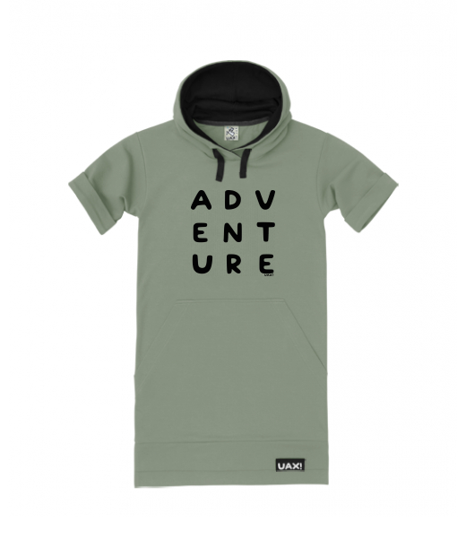 LADIES SWEATSHIRT DRESS SHORT for woman with design 1270 ADVENTURE in color OLIVA