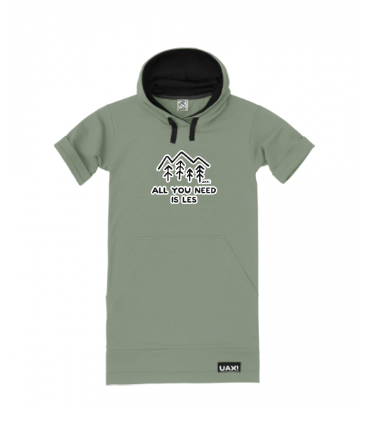 LADIES SWEATSHIRT DRESS SHORT for woman with design 1279 ALL YOU NEED IS LES in color OLIVA