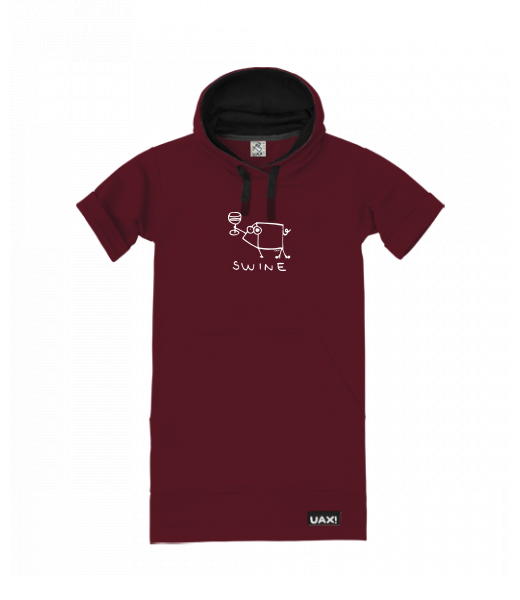LADIES SWEATSHIRT DRESS SHORT for woman with design 1323 SWINE in color DARK RED
