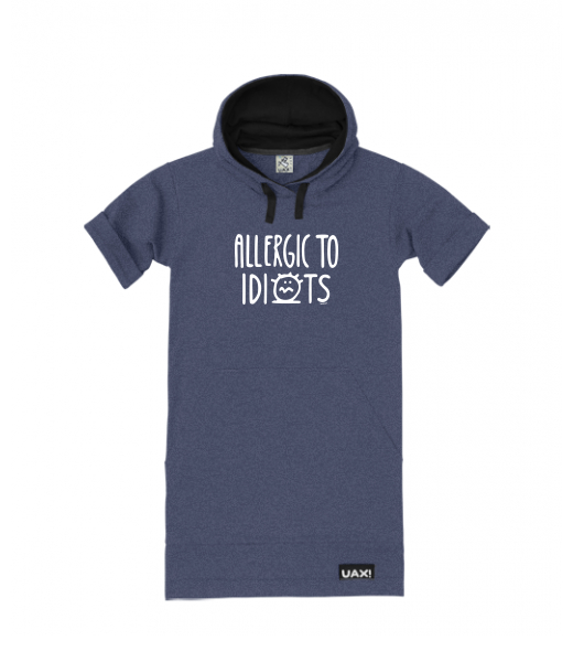 LADIES SWEATSHIRT DRESS SHORT for woman with design 1354 ALLERGIC TO IDIOTS in color JEANS