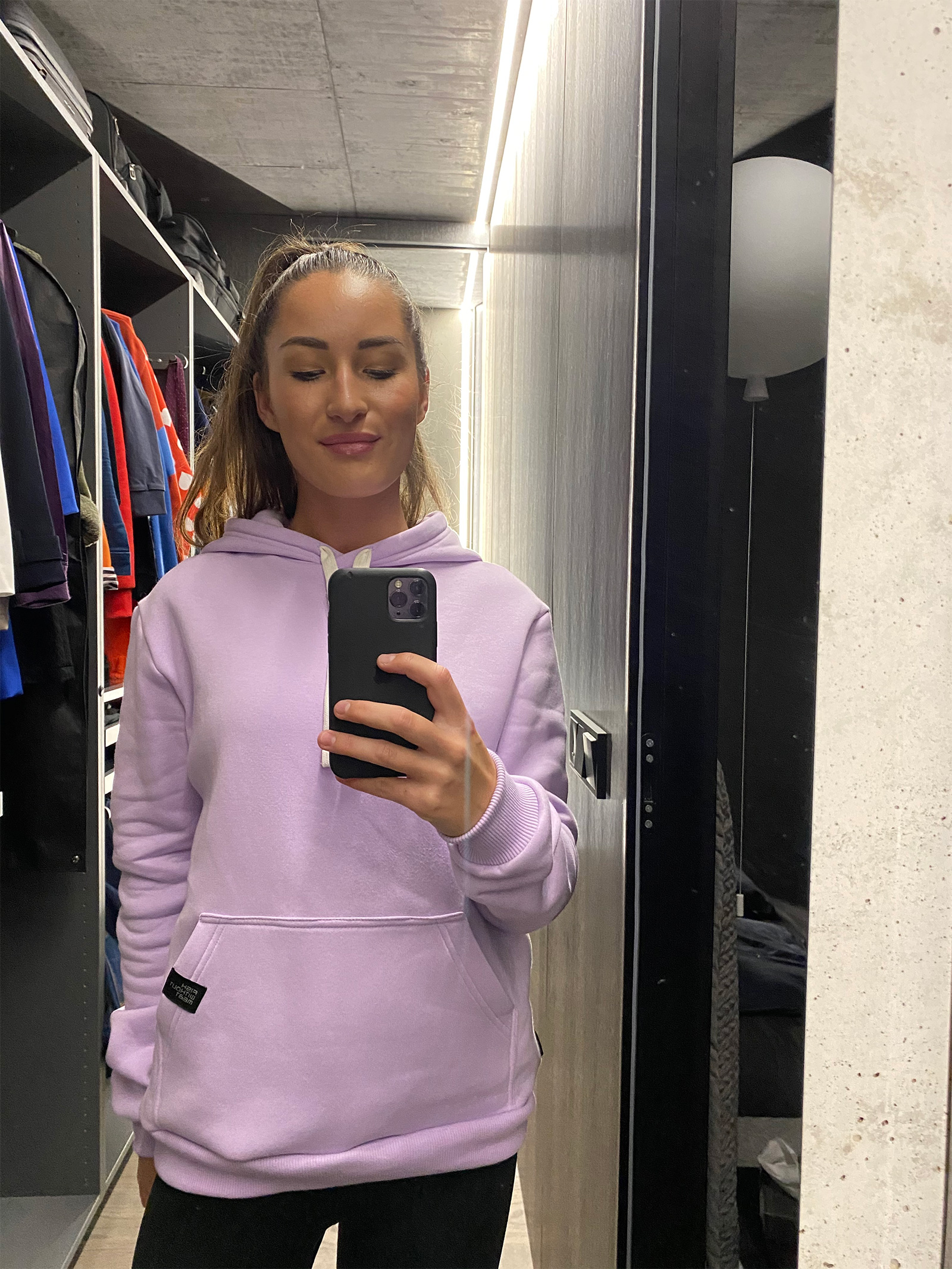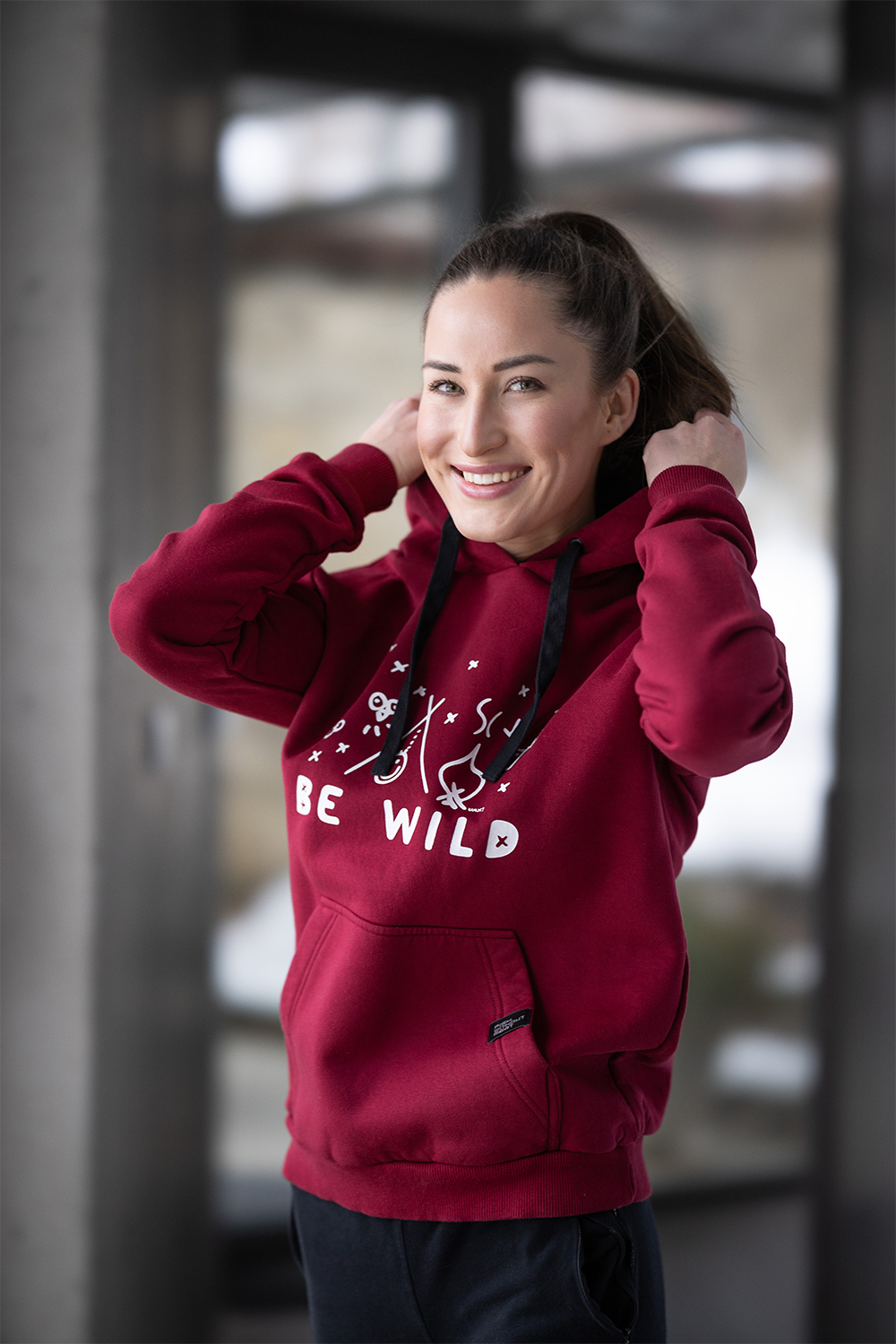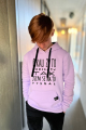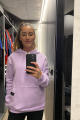 Women's sweatshirt with a hood and insulated headwear. The hood is sewn with an inner black knit insert. The sweatshirt has black drawstrings and spacious pockets on the front. The bottom hems and sleeve cuffs are made of elastic rib knit. We also sew in oversized sizes 3XL and 4XL. Ladies will also appreciate the larger opening over the head, which makes the sweatshirt comfortable to put on and does not ruin your hairstyle or makeup.