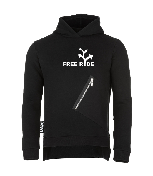 URBAN ASYMMETRICAL SWEATSHIRT UNISEX with design 344 FREE RIDE in color BLACK