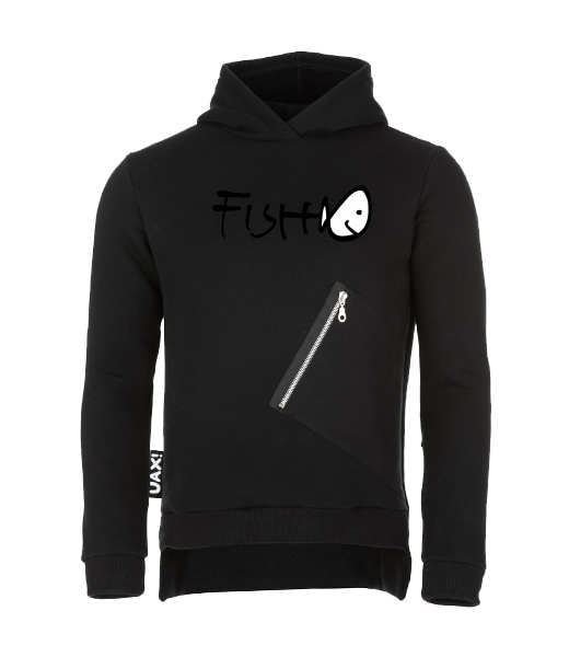 URBAN ASYMMETRICAL SWEATSHIRT UNISEX with design 357 FISH in color BLACK