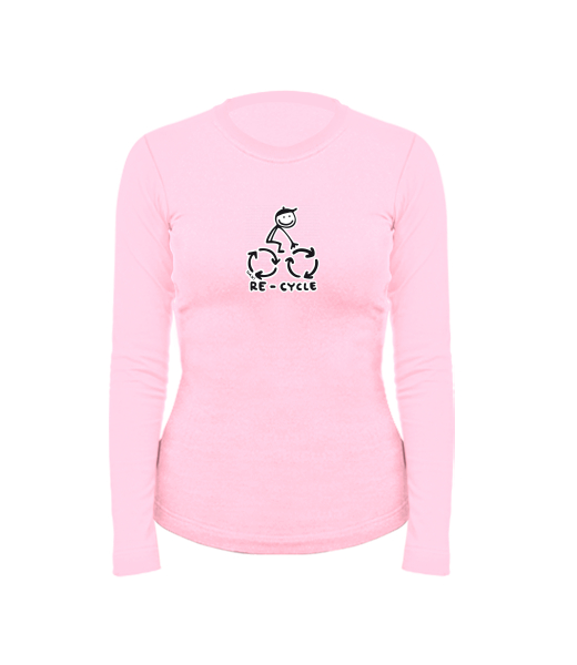 Women's cotton shirt with long sleeves for woman with design 1055 RE-CYCLE in color BABY PINK