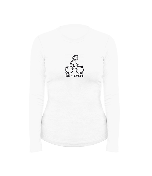 Women's cotton shirt with long sleeves for woman with design 1055 RE-CYCLE in color WHITE