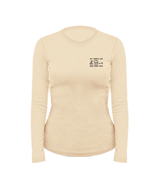 Women's cotton shirt with long sleeves for woman with design 1056 BIKE BEER BED in color CARAMEL
