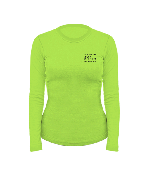 Women's cotton shirt with long sleeves for woman with design 1056 BIKE BEER BED in color PARROT GREEN