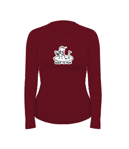 Women's cotton shirt with long sleeves for woman with design 1057 GOLF IS FUN in color DARK RED