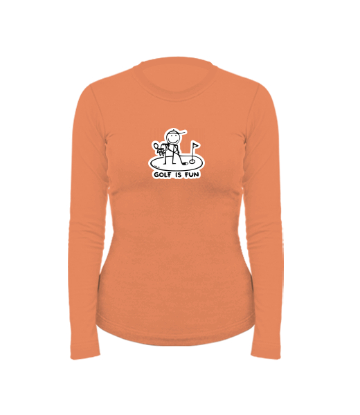 Women's cotton shirt with long sleeves for woman with design 1057 GOLF IS FUN in color MANDARIAN ORANGE