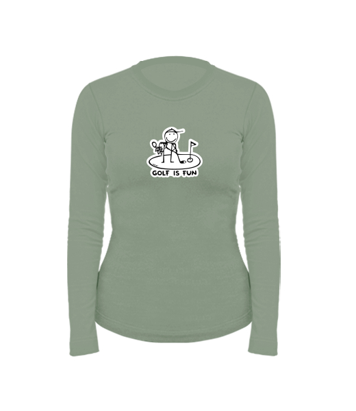 Women's cotton shirt with long sleeves for woman with design 1057 GOLF IS FUN in color OLIVA