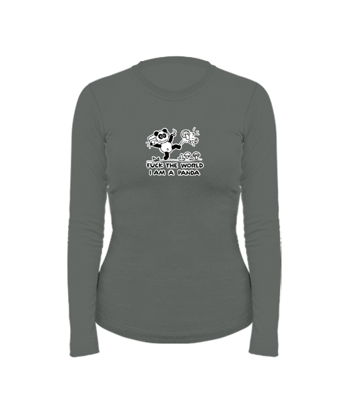 Women's cotton shirt with long sleeves for woman with design 1060 I AM A PANDA in color DARK GRAY