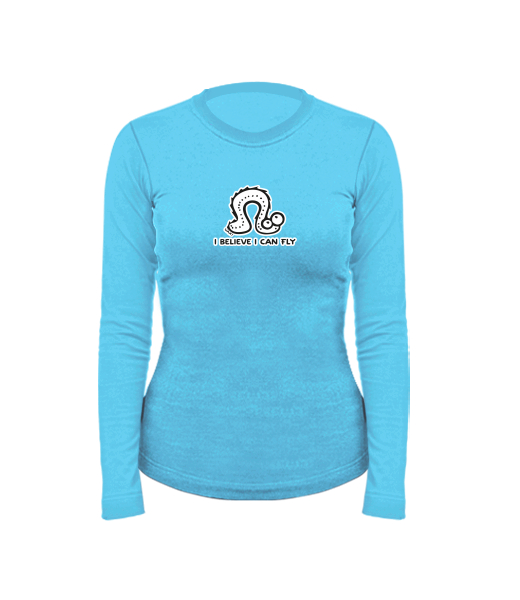 Women's cotton shirt with long sleeves for woman with design 1062 I BELIVE I CAN FLY in color BLUE ATOLL
