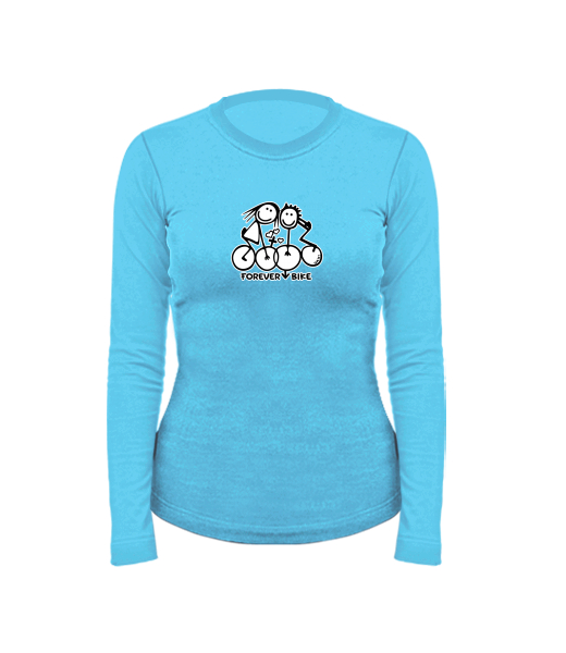Women's cotton shirt with long sleeves for woman with design 1068 FOREVER BIKE in color BLUE ATOLL
