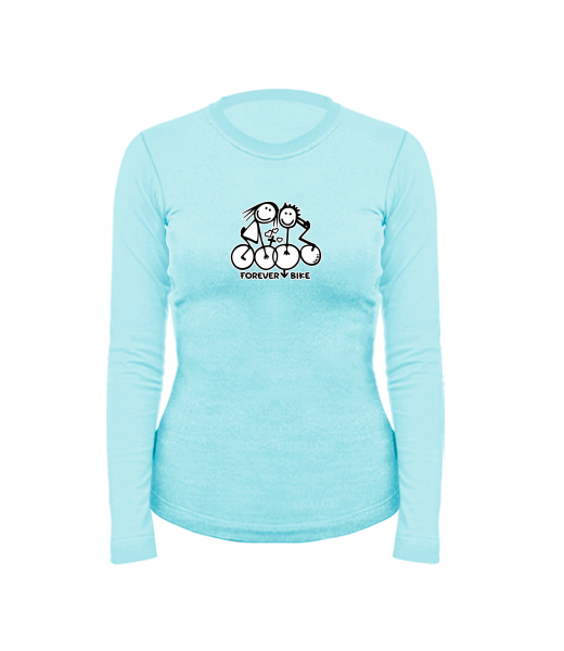 Women's cotton shirt with long sleeves for woman with design 1068 FOREVER BIKE in color PASTEL BLUE