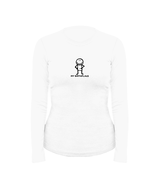 Women's cotton shirt with long sleeves for woman with design 1069 MY BIRTHPLACE in color WHITE