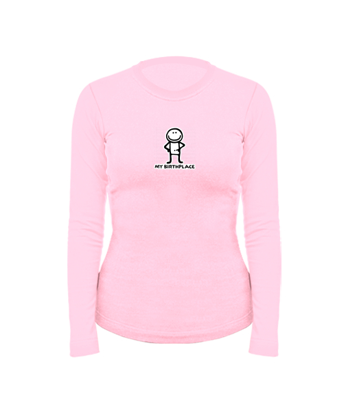 Women's cotton shirt with long sleeves for woman with design 1069 MY BIRTHPLACE in color BABY PINK