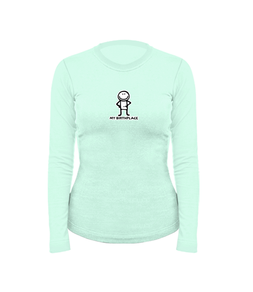 Women's cotton shirt with long sleeves for woman with design 1069 MY BIRTHPLACE in color MINT