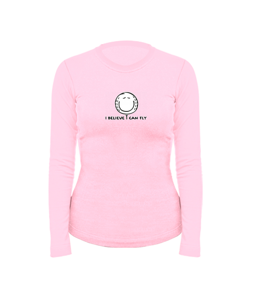 Women's cotton shirt with long sleeves for woman with design 1070 I BELIEVE I CAN FLY in color BABY PINK