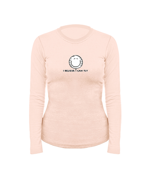 Women's cotton shirt with long sleeves for woman with design 1070 I BELIEVE I CAN FLY in color CAPPUCINO