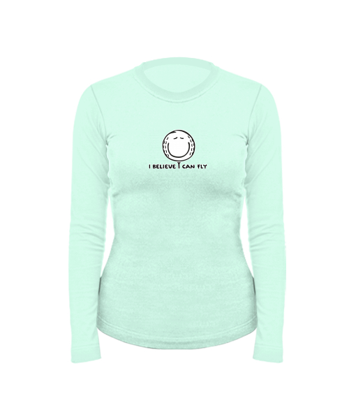 Women's cotton shirt with long sleeves for woman with design 1070 I BELIEVE I CAN FLY in color MINT