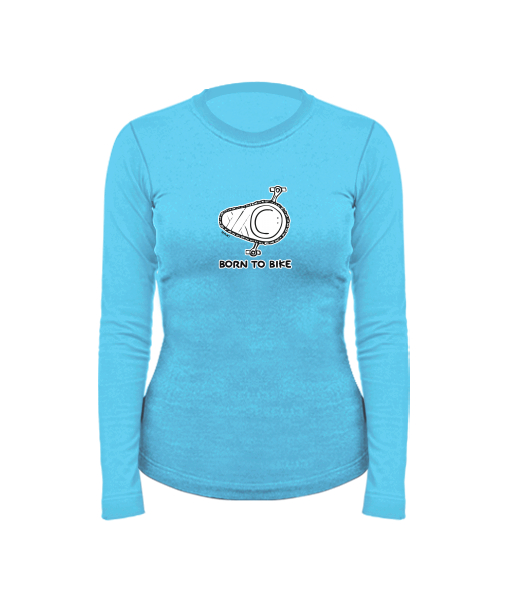 Women's cotton shirt with long sleeves for woman with design 1074 BORN TO BIKE in color BLUE ATOLL